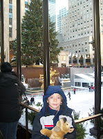The first day, we headed over the Rockefeller Center to see the tree and ice skating.  Then took in the Nintendo and Lego stores, at Seth’s request.  We had not bad fast food Indian for lunch in the area and wandered over to Bryant Park.  Had never seen their ice skating rink before (quite beautiful…and free), and the outdoor (heated) shops were still open from the holidays, and lots of fun to peruse.  Seth adored Times Square and all the touristy shops selling NYPD and FDNY merchandise…his favorite.  And, there were loads of fire trucks and police cars around in general, due to the messy and congested state of the city, and Seth got a kick out of all the commotion.  At 6PM, we took THE RIDE, and it was loads of interactive fun and a unique experience….chockful of jokes, singing, doing the wave, sightseeing and more.